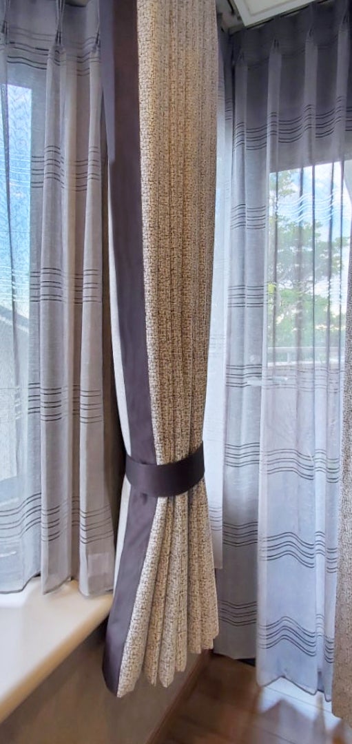 標準スタイルではなく、ベースの生地にアクセントを付けた「ボーダー付きカーテンスタイル」でのご用命です。