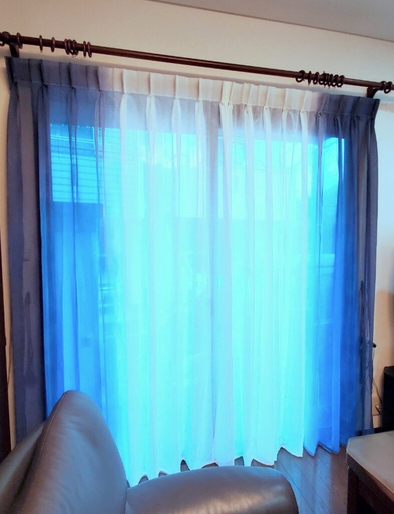 「ヨコ使い」でカーテン製作するのが通常仕様ですが、それを「タテ使い」して縫製することで雰囲気を変えることが出来ます。