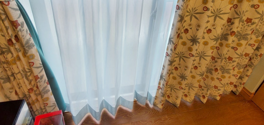 陽射しがたっぷり入る南西に面している窓は日光をカットできるよう「かんたん遮光裏地」を付けて遮光カーテンに変身させました。