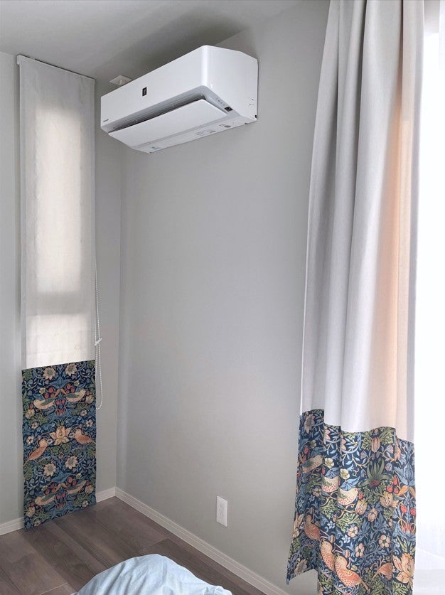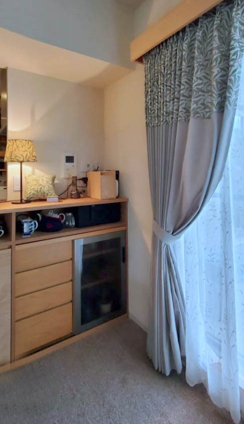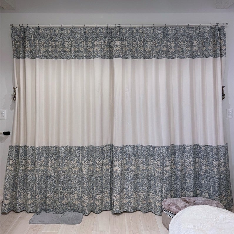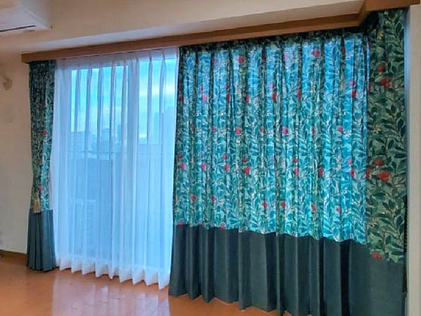 カーテンメーカーが推奨するスタイルだけでなく、ルーミストならではのオリジナルスタイルを製作することも出来ます カーラ―コーディネートした切替えスタイルは切替え位置や配置を思いのままに製作できます